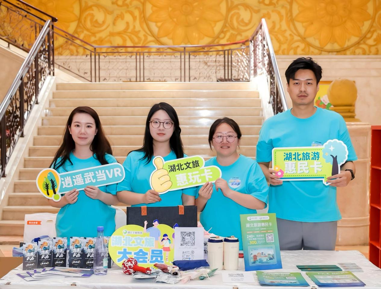 數(shù)旅集團在現(xiàn)場擺展,工作人員主動介紹“湖北文旅大會員”權(quán)益、湖北文旅惠玩卡產(chǎn)品、湖北旅游惠民卡產(chǎn)品和《逍遙武當》VR大空間沉浸式體驗項目,吸引了大量游客駐足。