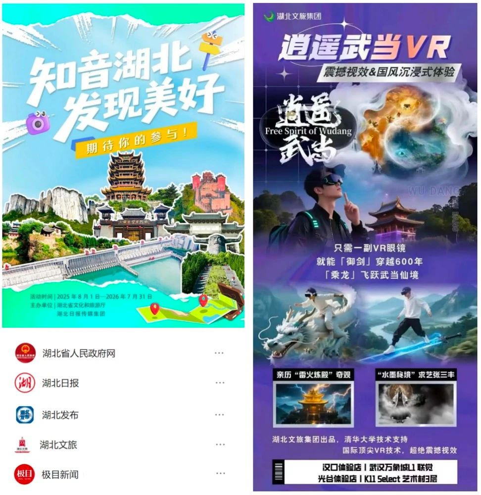 “知音湖北”攜手“逍遙武當(dāng)”共繪數(shù)字荊楚新畫(huà)卷。近期,“知音湖北 發(fā)現(xiàn)美好”全媒體征集活動(dòng)正式啟動(dòng)。數(shù)旅集團(tuán)“逍遙武當(dāng)”VR沉浸體驗(yàn)作為官方指定禮品,將武當(dāng)山72峰、36巖、24澗、九宮八觀以LBE大空間技術(shù)高仿真復(fù)刻,動(dòng)捕、光影、音效三維一體,讓游客在城市商圈即可沉浸式領(lǐng)略武當(dāng)神韻。項(xiàng)目6月亮相武漢萬(wàn)象城、光谷K11,即登頂大眾點(diǎn)評(píng)、美團(tuán)、抖音區(qū)域VR人氣榜,下一步將以授權(quán)模式走向全國(guó),持續(xù)講好湖北故事,傳播荊楚文化。